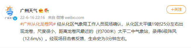 6月16日广州龙卷风出现时间及地点