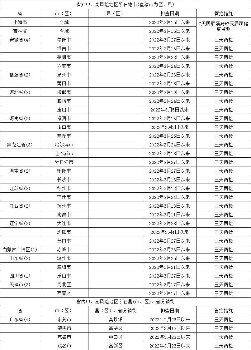 4月8日晚,广东疾控发出提醒:截至2022年4月8日12时,全国疫情中高风险地区所在地市来(返)粤人员健康管理措施见下图?